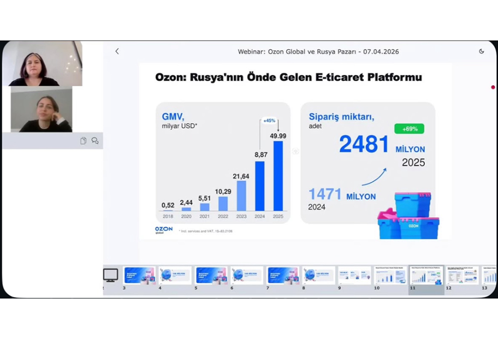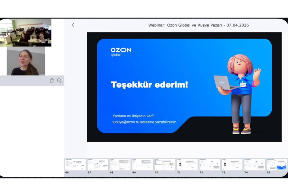 İKÜ Meslek Yüksekokulu (MYO), 7 Nisan 2026 Salı günü “E-Ticaret Uygulamaları: Ozon Global ve Rusya Pazarı” başlıklı webinar düzenledi. Ozon Global İş Geliştirme Başkanı Zeynep Çiftçi’nin konuşmacı olduğu etkinlikte, Rusya pazarının dinamikleri ve e-ticaret süreçlerine dair önemli bilgiler öğrencilerimizle paylaşıldı. Moderatörlüğünü Öğr. Gör. Dr. İrem Oran’ın üstlendiği etkinlikte öğrencilerimiz, global pazarlara açılmanın incelikleri ve güncel e-ticaret stratejileri konularında bilgi sahibi oldular.
