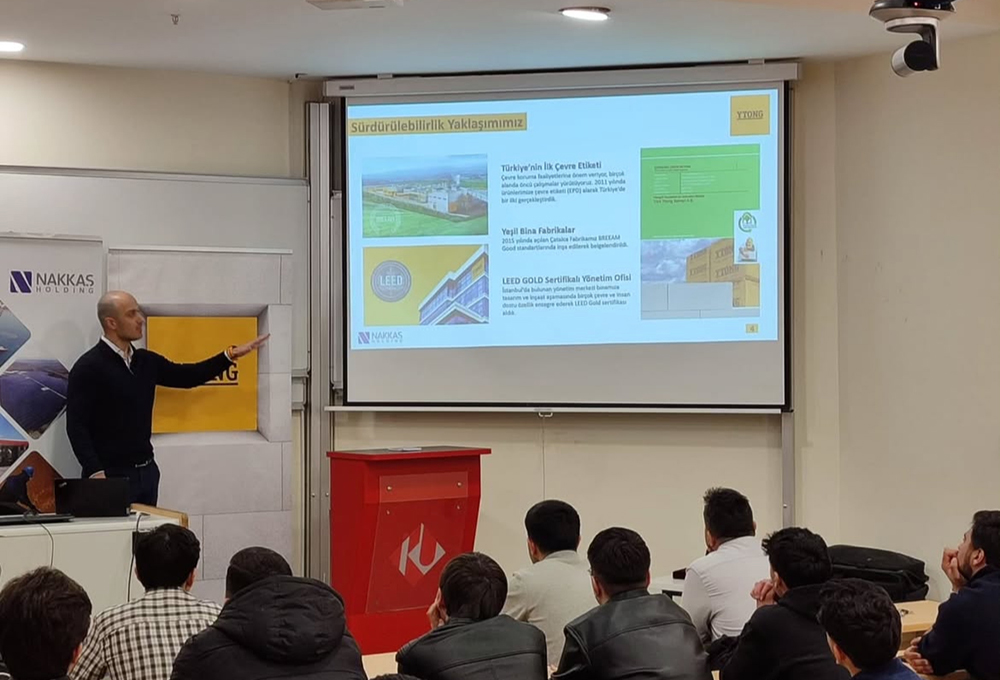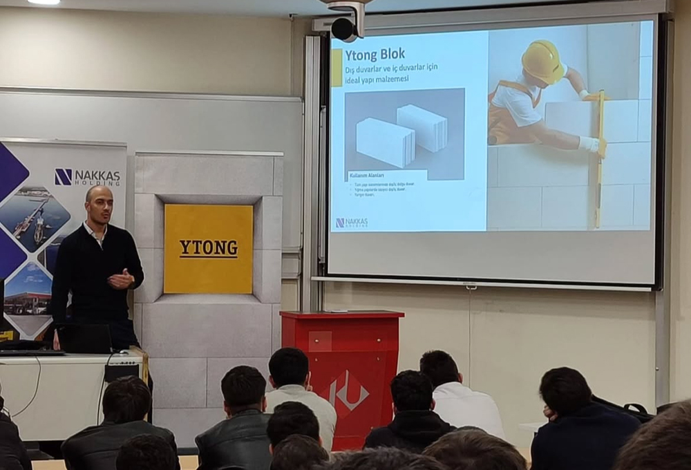 İnşaat Teknolojisi Programı tarafından, 9 Nisan Perşembe günü "Enerji Verimli ve Güvenli Yapılarda YTONG Çözümleri" başlıklı seminer düzenlendi. Etkinliğe konuşmacı olarak katılan YTONG Firma Yetkilisi Oruç İcen Cerbezer; sürdürülebilir yapı malzemeleri, ısı yalıtımı, enerji tasarrufu ve uygulama süreçlerine dair önemli bilgiler aktardı.