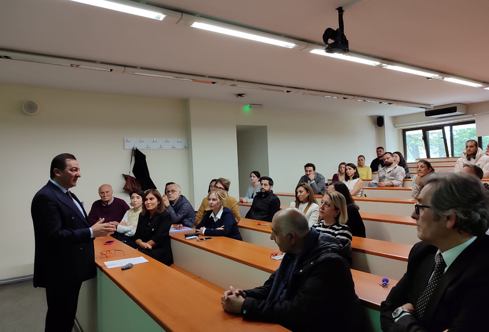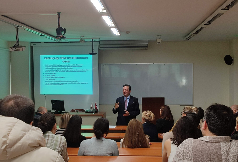 İKÜ Meslek Yüksekokulu (MYO) tarafından, 21 Ekim Salı günü "Tezgahtan Amfiye: Kapalıçarşı Deneyimiyle İletişim Sanatı" başlıklı söyleşi düzenlendi. Etkinliğe konuşmacı olarak katılan Kapalıçarşı Yönetim Kurulu Üyesi Doç.Dr. Rezal Koç; yılların tezgâh deneyimini iletişimin incelikleriyle buluşturarak, doğru iletişimin, güven inşa etmenin ve insan ilişkilerinde fark yaratmanın önemini katılımcılara aktardı.